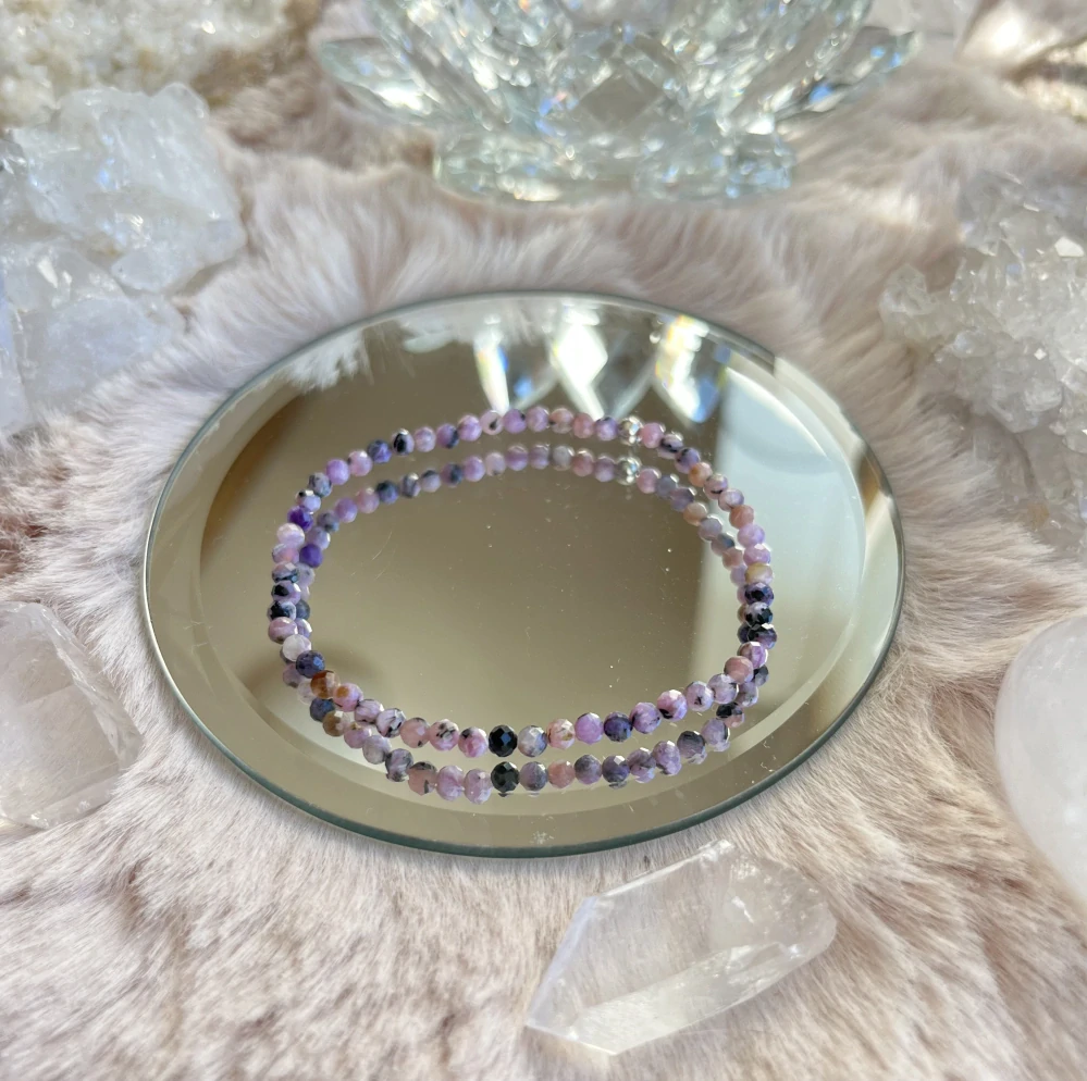 Překrásný, velmi jemný fasetovaný Čaroit, kulička 3,5 mm, navlečeno na pružné gumičce, velikost na přání.