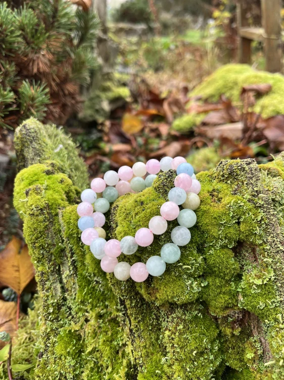 Morganit je kámen čistoty srdce a jasného vnitřního vidění. Jeho vibrace je velmi jemná. Jeho jemné růžové tóny prohlubují náš soucit se vším živým kolem nás, respekt před Boží tvořivou silou, kterou bychom měli podle svých možností co nejpečlivěji ochraňovat, neboť jen tak dojdeme k souzvuku s přírodou. Díky Morganitu můžeme vlastnosti jako bezohlednost, fanatismus, špatné mravy můžeme krok za krokem začít odstraňovat.